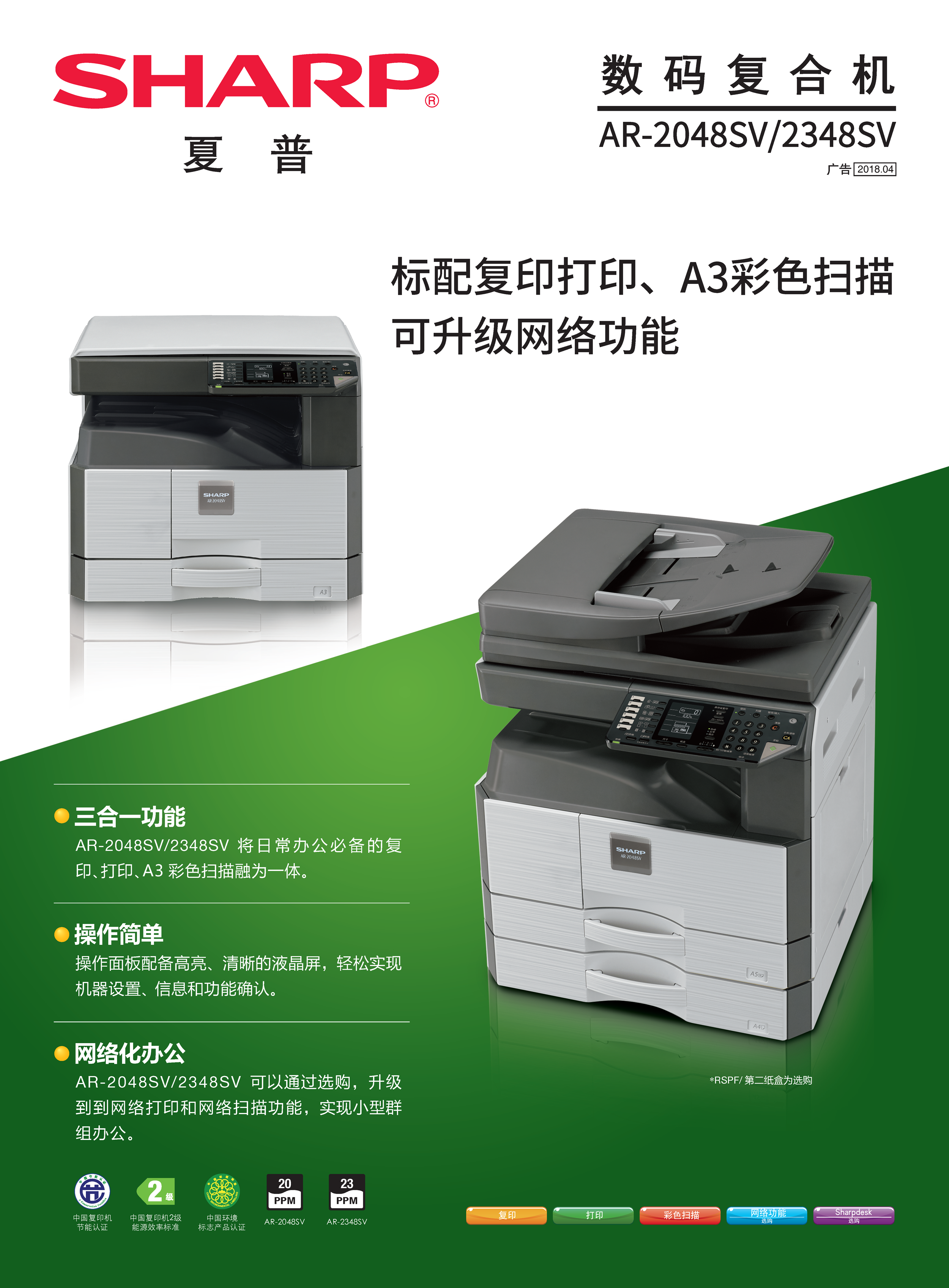 夏普 AR-2048SV/2348SV A3黑白中低速機